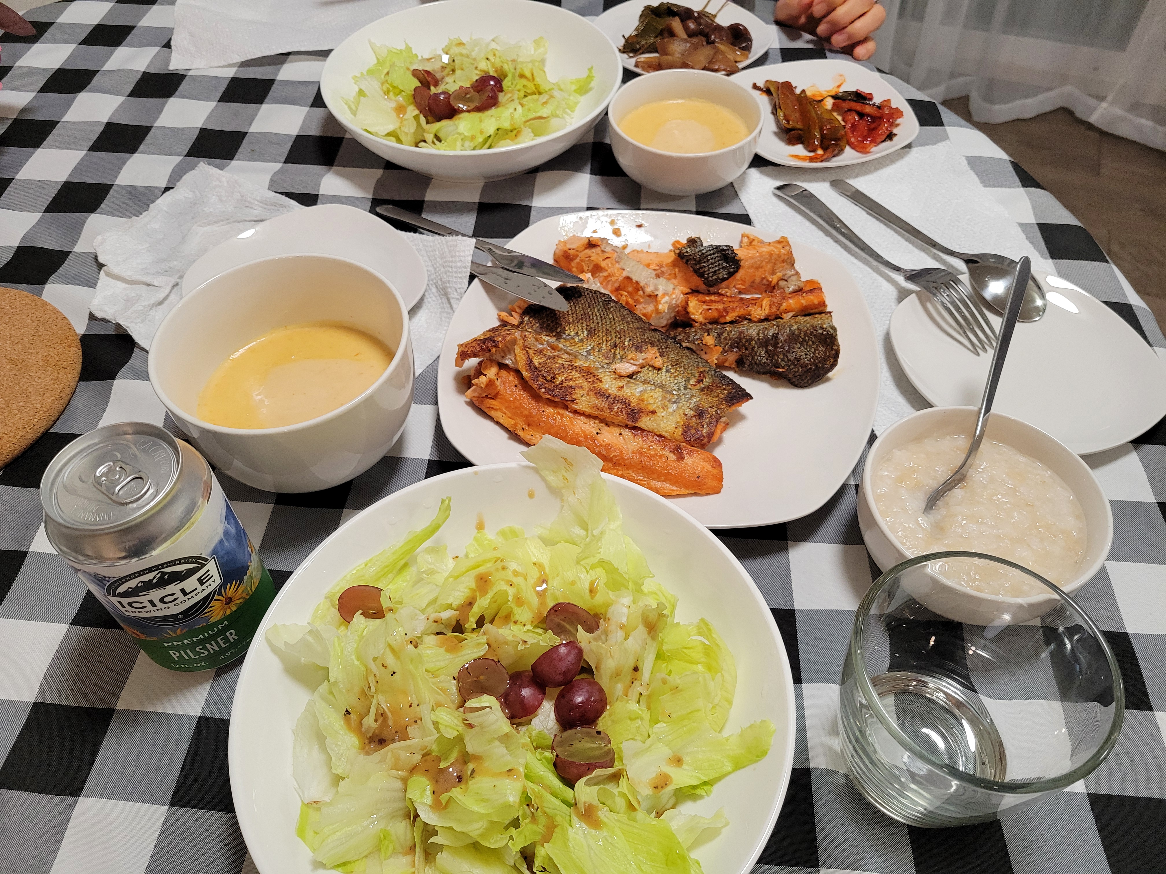Chinook과 Sockeye 두 가지 종류의 연어를 사와서 구워먹으며