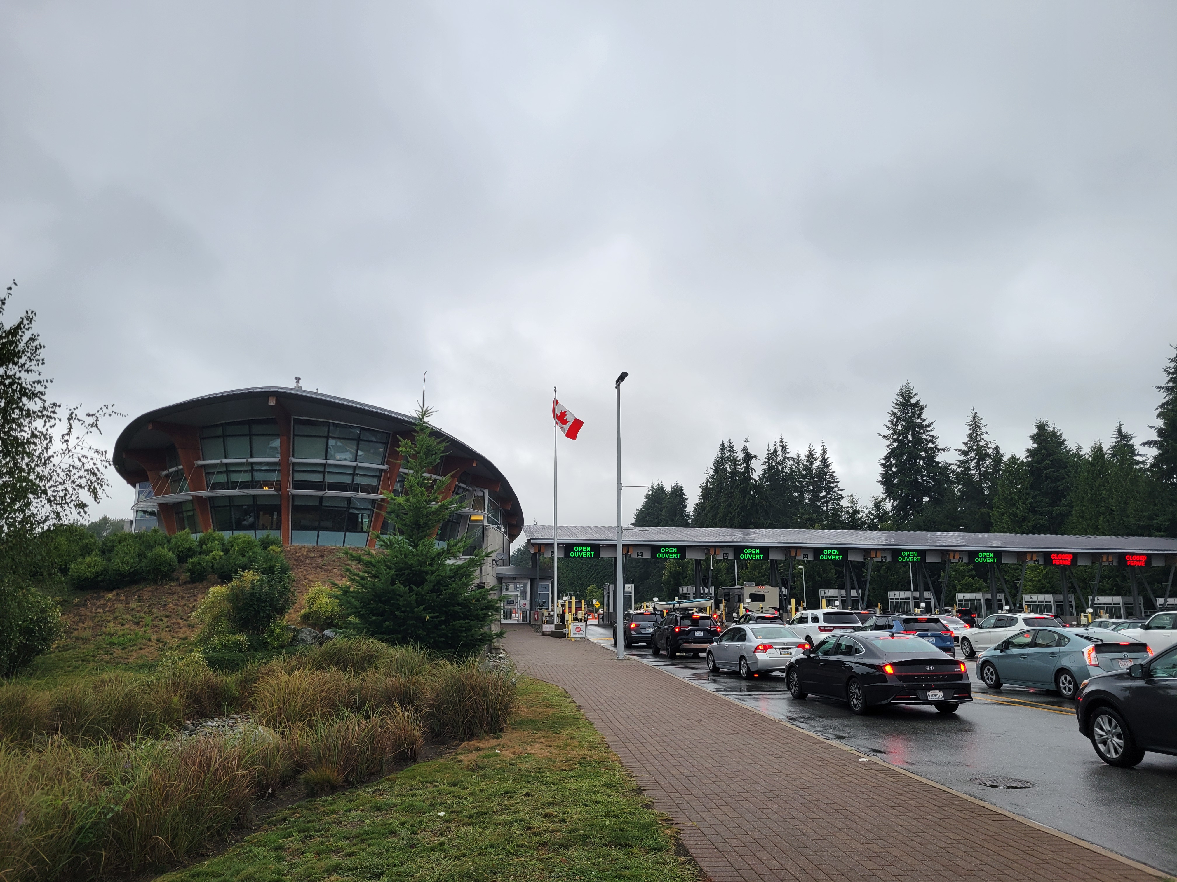캐나다에서 미국으로 넘어가는 국경은 심한 정체를 보였다.