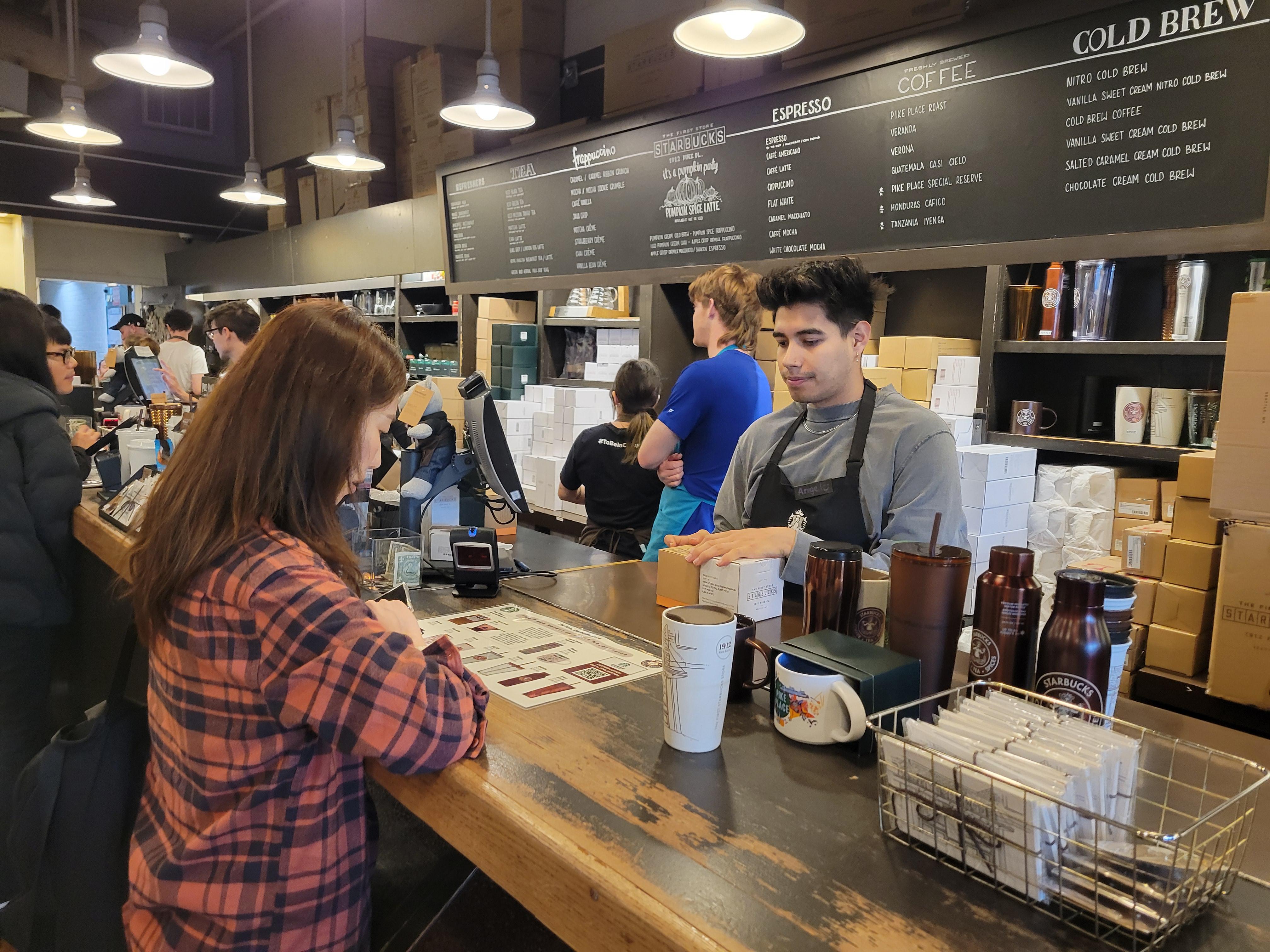 파이크 플래이스에 오면 또 스타벅스 1호점을 안가볼 수 없다.